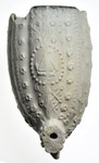 Versierde Korte Isabé met een bol kopmodel. De pijpenkop is eerst opgedeeld in een paar grote lobben. Daarop is een motief gegraveerd van bloemen, stippen en cirkeltjes, die verbonden worden door ruitvormig lopende lijnen. Naar de roker toe is een uitsparing gemaakt in een cirkelvorm. De cirkel wordt begrensd door parels en toont het merk 'scheepje'. Pijpenmaker van dienst is dan de firma H. van Rijst Jzn uit Gouda (Duco 2003). De spoor is onbewerkt, op de steelaanzet staan schelpen.