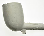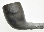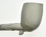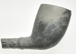 Isabé model pijpenkop met spoor op de steelaanzet, 1875-1900. De kop is onbewerkt, de spoor is een soort gebogen vin. Op de steel staat een walvisbek, een motief dat teruggrijpt op de Jonaspijpen uit de 17e eeuw en dat nooit helemaal weg is geweest.
