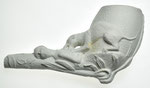 Nog een verhaal wordt verteld op deze pijp. Een naakte vrouw wordt aangevallen door tijger. De voorstelling lijkt ingegeven door schilderijen uit de Romantiek, de decoratiestijl van de pijp zelf is meer Jugendstil. De vrouw ligt links langs de kop en op de steel, terwijl de tijger (of panter of luipaard) van de rechterkant van de kop komt. Op de kop is een ondergrond voor de tijger aangebracht. Om de voorstelling heen lopen bladeren en er staan bloemen op de steel. Op de persnaden loop t een lage lob en de hiel is een plantenknop. Het hele oppervlak rond de voorstelling, van de kop en de steel, is gepointilleerd. De vorm is gemaakt in het buitenland en door een Nederlandse fabrikant gebruikt.