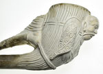 Isabé model pijpenkop uit de laatste dertig jaar van de 19e eeuw. Op de linkerkant van de kop staat een jager met zijn jachthond afgebeeld. De jager houdt met één hand zijn geweer vast. Op de rechterkant van de pijpenkop (uit het zicht van de jager) vlucht een hert weg. Naar de steel toe worden de twee taferelen gescheiden door een grote loofboom. Dit wekt de indruk dat de jachtpartij zich in het bos afspeelt. Van de steel af is de persnaad afgewerkt met een bladmotief, die zich bovenin in twee halve bogen splitst.