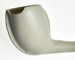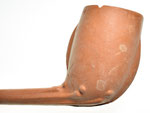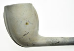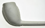 Buitenlandse rondbodempijp uit de laatste kwart van de 19e eeuw. Aan de voor en achterzijde van de kop, op de persnaden loopt een lob met een licht verhoogde rand eromheen. Langs de lobben zijn cirkeltjes aangebracht. De binnenkant van de ketel is interessant, want die is gevormd door een stopper met vijf geulen erin. Normaal werd deze stopper gedraaid tijdens het gebruik en waren deze kanalen dus niet in de pijpenkop zichtbaar.