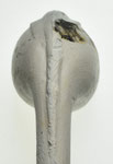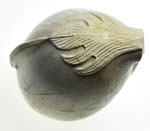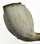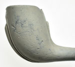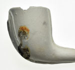 Kromkop model pijpenkop met spoor uit de periode 1875-1900. Er is hier geen sprake van een lob op de naden, maar een decoratie met een floraal motief op de naden. Bij gebrek aan een passende groep staat de decoratie hier afgebeeld. Dit is meteen een probleem van de vormenrijkdom van de periode 1875-1900: veel modellen zijn niet direct ergens in te delen.