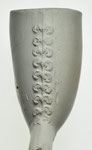 Rondbodem model pijpenkop met een lob op de naden en een decoratie van grote stippen op de onderste twee derde van de pijpenkop.