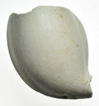 Rondbodem pijpenkop uit de periode 1875-1900. Shagpijp ketelgrootte. Aan de voor- en achterzijde van de kop, op de persnaden, zit een enkele lob, die als een smalle rand uitsteekt. De rest van de kop en de steel is onbewerkt.