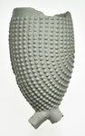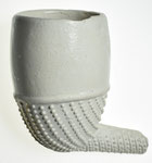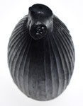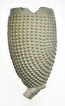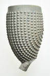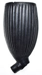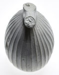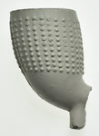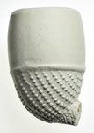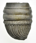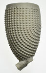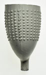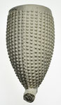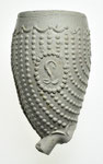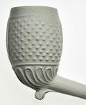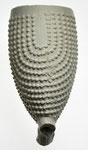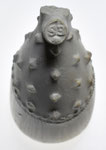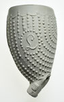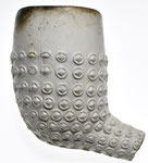 Rondbodem model pijpenkop met een lob op de naden en een decoratie van grote stippen op de onderste twee derde van de pijpenkop.