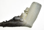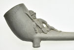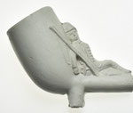Nog een variatie van hetzelfde model pijp. Hier is het oppervlak van de pijpenkop onbewerkt gelaten en de jager heeft weer wat meer detail meegekregen.