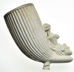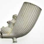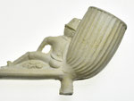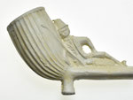 Rustende herder op sigarenpijpen met een kromkop model. De kop is gecanneleerd, met de lijnen naar binnen toe in plaats van naar buiten. Aan de achterkant van de herder is ook het schaap zichtbaar, die onder zijn benen ligt. De vier pootjes zijn opgetrokken naar opzij, wat een grappig gezicht is. Door een fabrieksstort heb ik het model vaker gevonden, inclusief een bijpassende, complete steel. In combinatie met het eerste deel is een representatief beeld van de hele pijp gemaakt.
