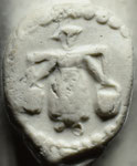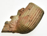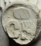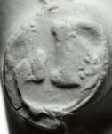 Dezelfde pijpenkop als de bovenstaande, maar nu met de tekst bijna niet meer leesbaar. Zichtbaar is nog: 'VAN DE .O.'. De pijp is na de persingen met reclametekst nog even gebruikt, terwijl de tekst zelf is weggehaald, zonder er al te veel werk van te maken.