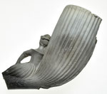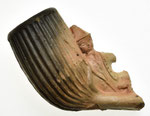 Gecanneleerde pijpenkop uit een stort van Hendrik van der Pool, 1860-1870. Tegen de pijpenkop ligt een rustende herderin. Bij de herderin ligt een schaap te slapen. De pijp wijkt in model af van de bovenstaande zwarte pijp en heeft een hiel met knopvorm. Onder de herderin, op de steel, staat de tekst 'No 16 H. VAN DER POOL' met op de andere kant 'IN GOUDA'.