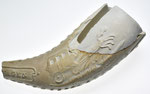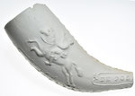Hoornmodel fantasiepijp met aan de linkerzijde een galopperende ruiter die op een hoorn blaast. Op het steelgedeelte van de kop begint een tekstvak. Op de rechterzijde is een moderne koets gegraveerd, getrokken door galopperende paarden en met een koetsier die een lange zweep slingert. Ook achter de koets is een tekstvak zichtbaar. Onder zowel de ruiter als de koets is een ondergrond gegraveerd. De persnaden van de pijp zijn afgewerkt met een bladmotief. Van completere exemplaren van deze pijp is bekend dat er links 'DE POSTILJON' en rechts 'POSTWAGEN' in de tekstvakken staat. De pijp is daarmee een eerbetoon aan het postsysteem van die tijd. De gezwinde spoed van de paarden is om de post zo snel mogelijk bij iedereen thuis te krijgen.