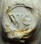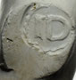 GI op een dubbelconisch gevormde pijpenkop uit de periode 1645-1655. GI wordt toegeschreven aan de Rotterdamse pijpenmaker Gerrit Jan van der Vlas (Lit. 15).