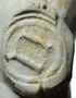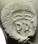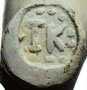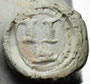 Rotterdamse dubbelconische pijpenkop uit de periode 1625-1635. De pijp is op de hiel gemerkt met een patriarchaal kruis met twee toegevoegde initialen. Aan de hand van hetzelfde merkstempel op de steel blijkt het stempel op de hiel op zijn kop te zijn gezet, de initialen zijn CM (of CH?).