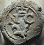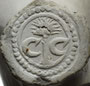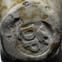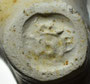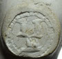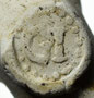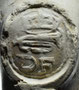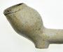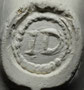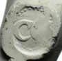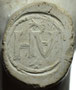 Pijp van waarschijnlijk dezelfde maker, deze keer gevonden rond Reeuwijk. De initialen zijn door slijtage slecht zichtbaar en lijken op twee grote stippen.