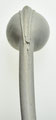 Ovaalvormige pijpenkop met een deuk van de steel af. Deze vervorming moet zijn opgetreden tijdens het droogproces, of tijdens het stapelen in de pijpenpot, maar vóór het bakken. Met het bakken heeft deze pijpenkop de vorm definitief behouden.