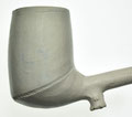Pseudo omgezette ovaalvormige pijpenkop. De pijp volgt het model van de handmatig omgezette pijpenkoppen, maar is het resultaat van een in de mal geklopte vorm. Het model was na het persen al af. Aan de tweede foto is te zien dat de pijp niet doorgesneden is geweest. Het merk is ABC