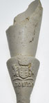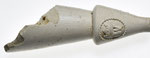 Laat 19e eeuwse sigarettenpijp met kop en steel in één lijn. Het ovaalvormige kopgedeelte is voorzien van cannelures. Op de steelaanzet loopt een verticale lijn als afsluiting. Onder deze lijn, op de steel, is nog net een bloemmotief waar te nemen. Sigarettenpijpen waren meer in lijn met de vorm van Polka pijpen, omdat je sigaretten op dezelfde manier rookte. Het is dus niet vreemd dat er sigarettenpijpen zijn gemodelleerd naar de Polka pijp.